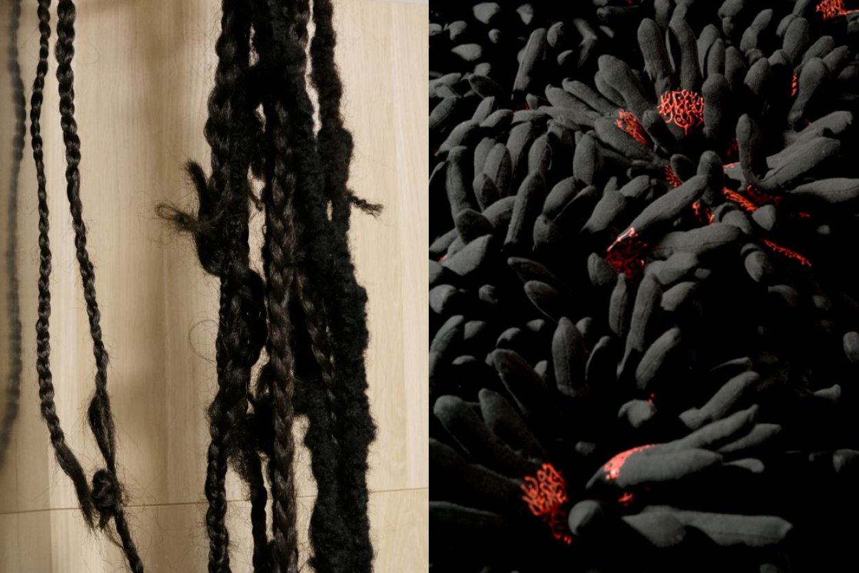 Titel: "Haarseil" Objekt aus künstlichen Haaren